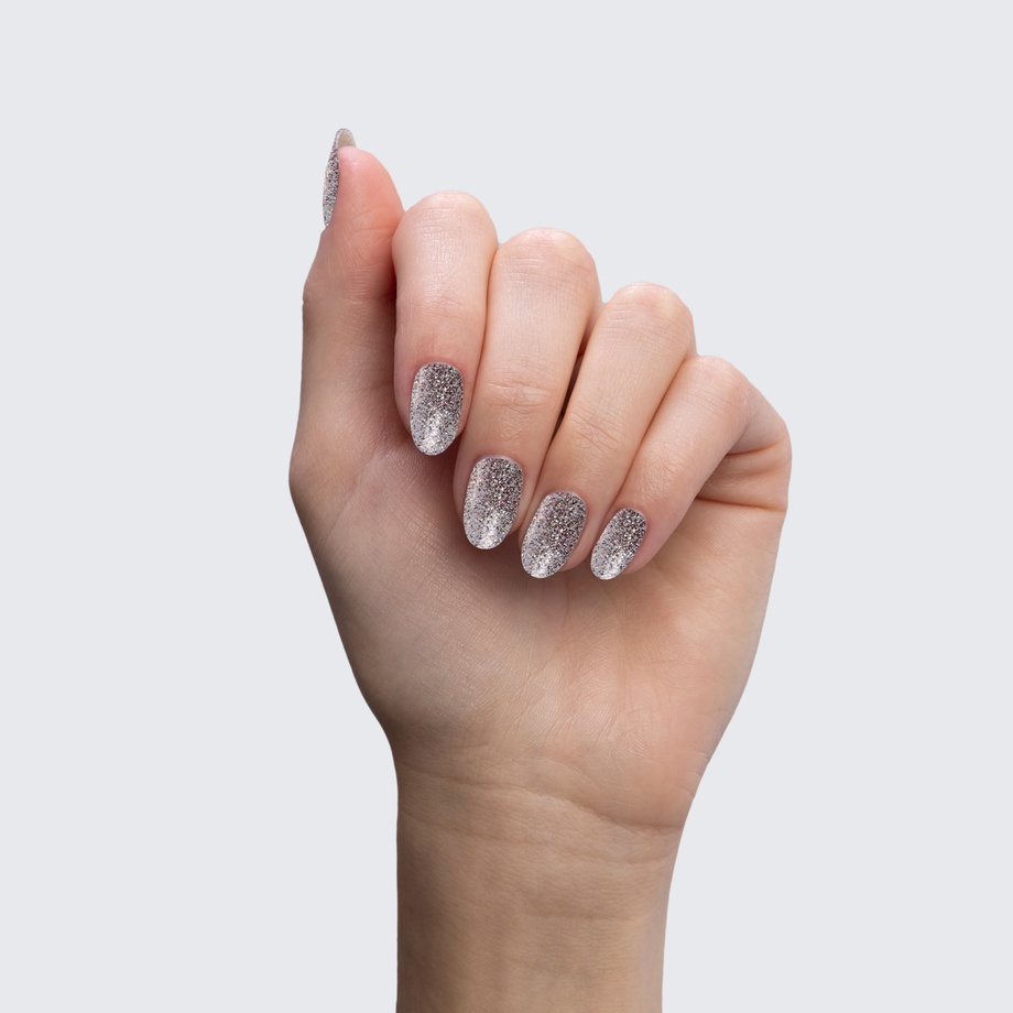 The rose gold glitter of this super shimmery, translucent polish always tells it like it is.